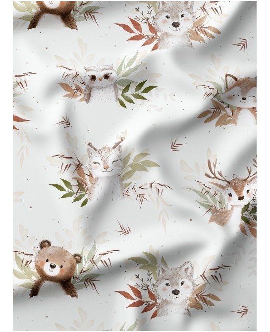 Tissu coton La Forêt – Motif aquarelle renard, faon, hibou, ours – Style nature et bohème