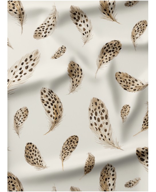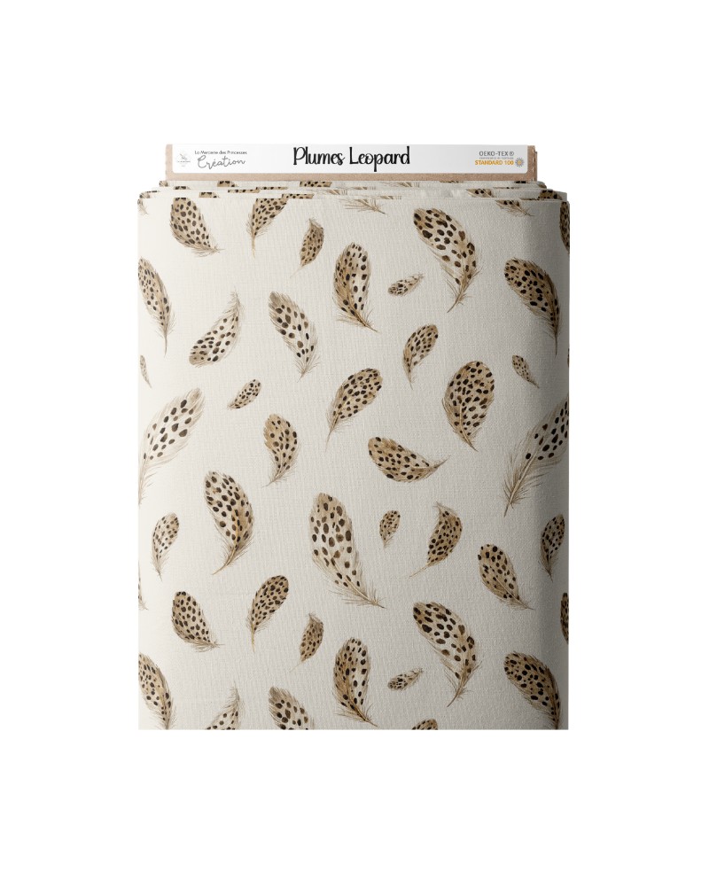Tissu Plumes Léopard – Motif animal élégant et naturel pour couture & déco- Certifié Oeko-Tex®