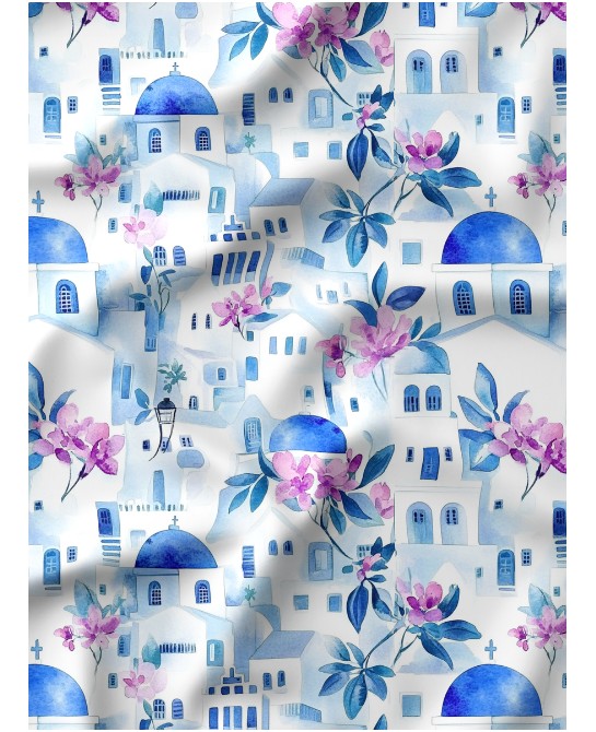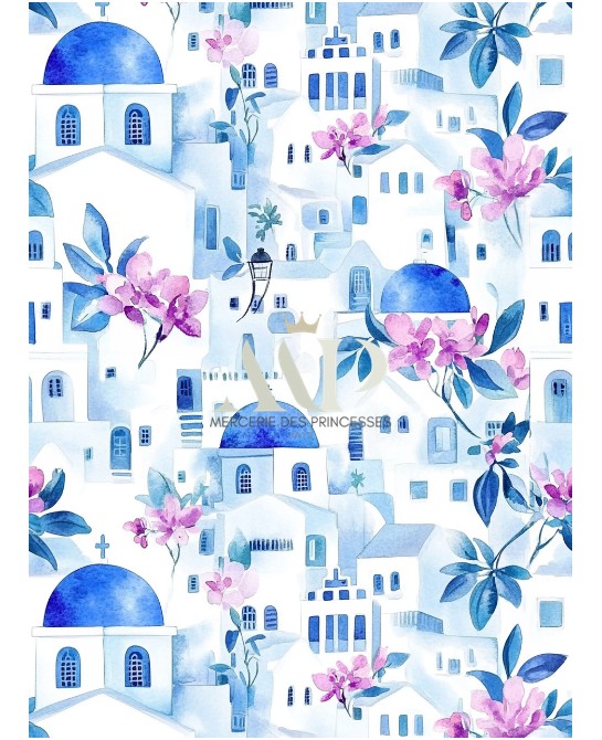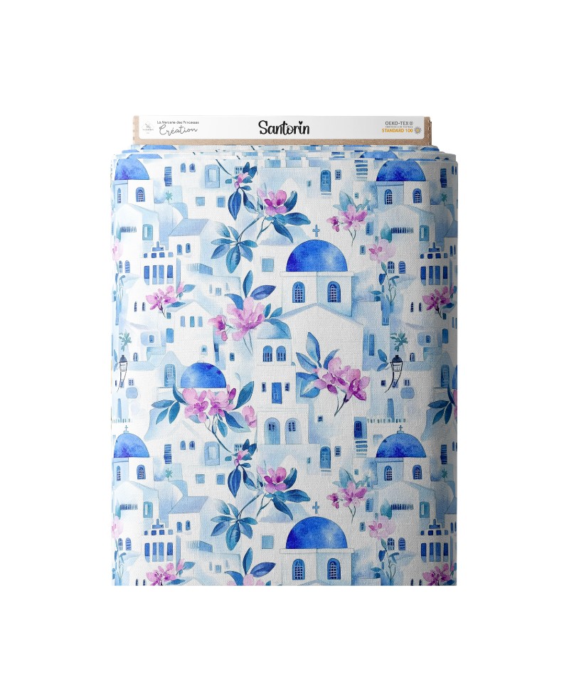 Accessible aux débutants comme aux couturiers expérimentés, ce tissu vous permettra de créer des pièces élégantes et durables. Son design inspiré des paysages de Santorin, avec ses maisons blanches, ses dômes bleus et ses touches florales, apporte une ambiance lumineuse, douce et dépaysante.