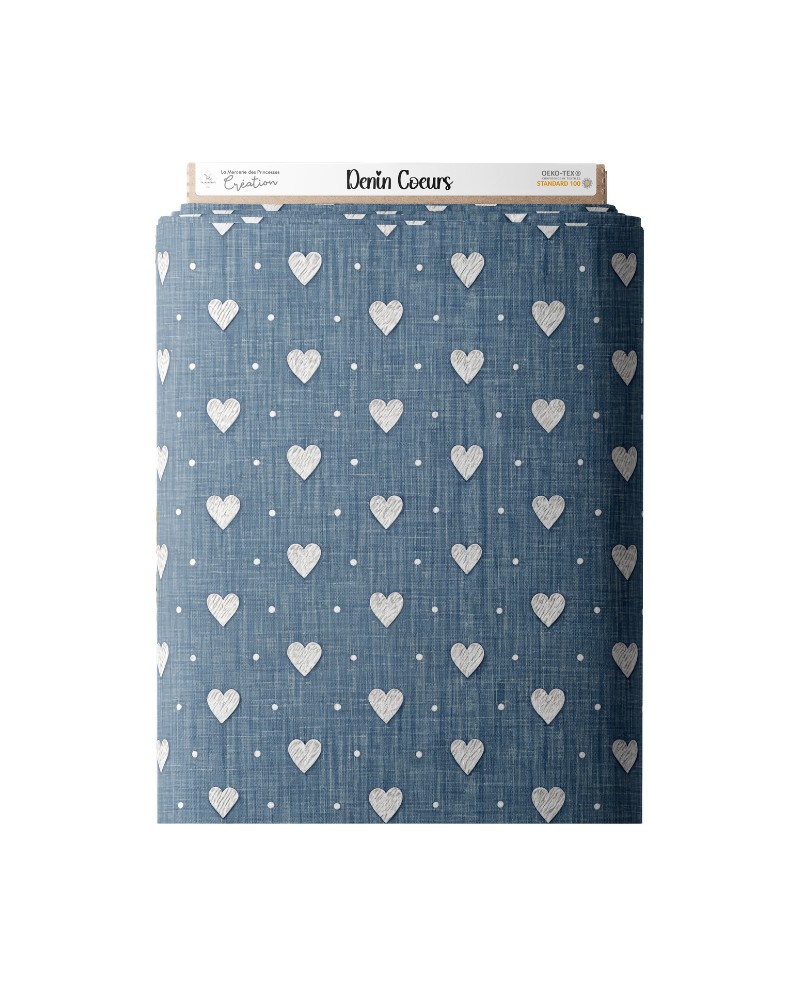 Tissu imprimé - motif Jeans Denin Coeurs - Certifié Oeko-Tex®