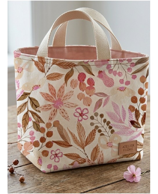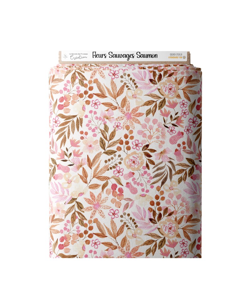 Tissu en coton prémium Oeko-tex standard 100 représentant des bouquets de fleurs sauvages aux couleurs saumons