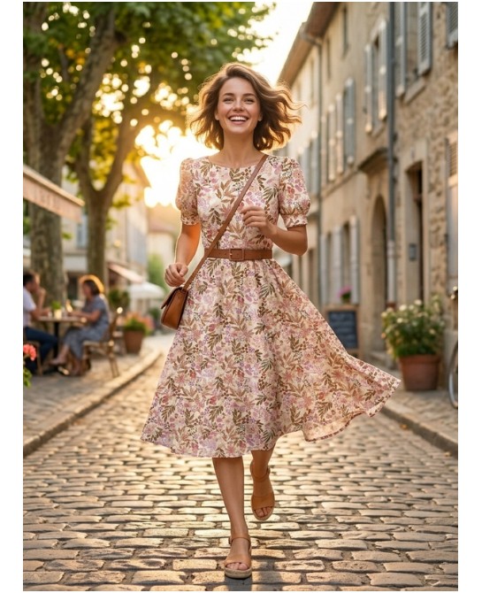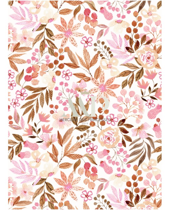 Tissu coton imprimé Fleurs Sauvages Saumon - Certifié Oeko-Tex®