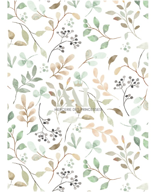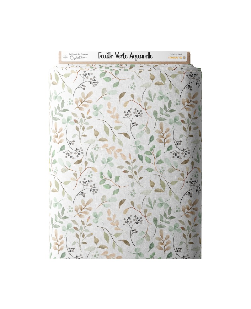 Commandez dès maintenant votre tissu feuillage aquarelle en coton Oeko-Tex® et créez des pièces uniques, délicates et intemporelles.