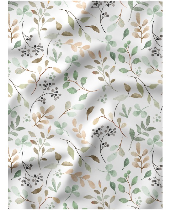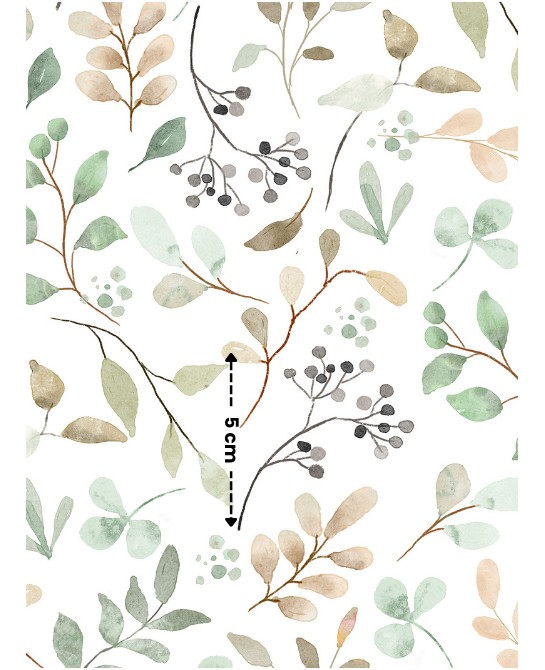 Plongez dans une atmosphère douce et apaisante avec ce motif de feuillage à l’aquarelle, où se mêlent feuilles délicates, rameaux légers et nuances végétales subtiles. Sur un fond clair, chaque élément semble posé avec légèreté, comme une empreinte de nature suspendue, créant une ambiance à la fois fraîche, poétique et équilibrée.